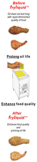 Fryliquid is a natural product that restores the anti-oxidants that are lost from heat. It helps by acting, in effect, like a 'vitamin', protecting the oil against breakdown during cooking.